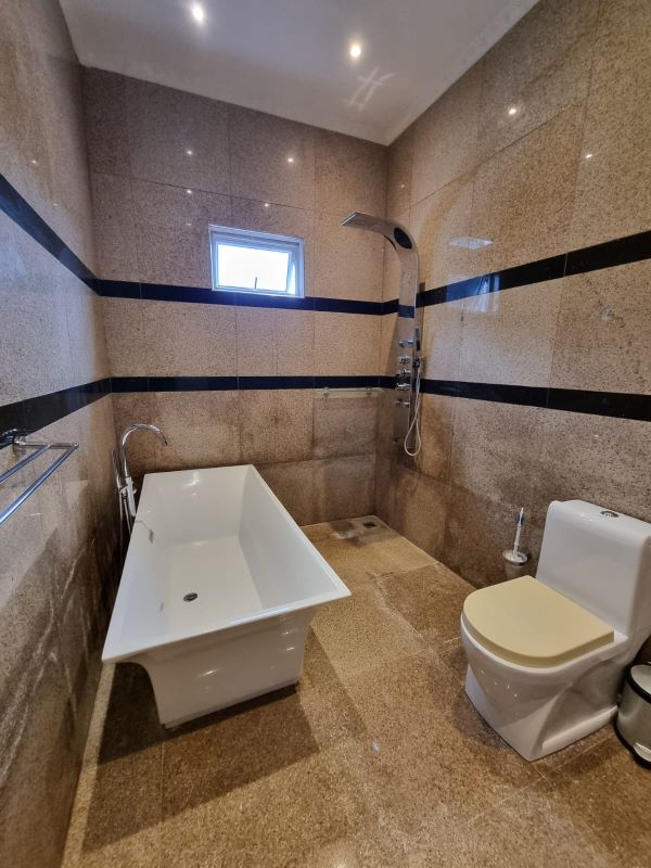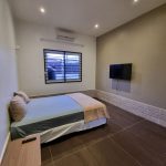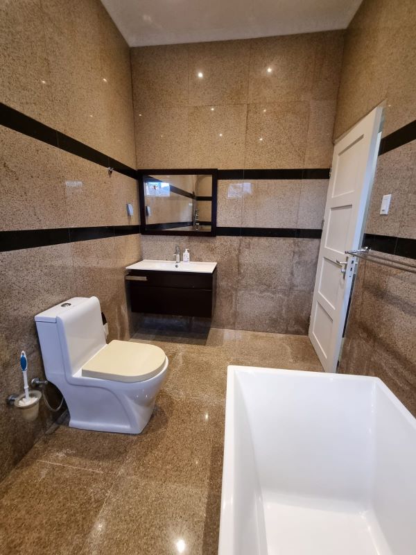 De woning beschikt over drie ruime slaapkamers, waarvan één masterroom met een eigen badkamer, toilet, luxe badkuip en een ruime walk-in closet. De woonkamer is royaal opgezet en afgewerkt met hoogwaardige materialen, wat zorgt voor een aangename en stijlvolle leefruimte. De keuken is voorzien van modern apparatuur en biedt alle comfort voor dagelijks gebruik. Daarnaast is er een gesloten garage geschikt voor één auto.